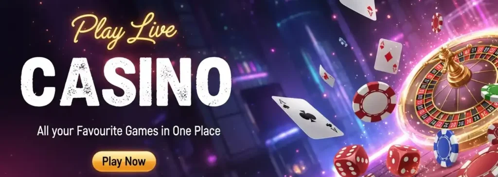 Play live casino games like Teen Patti, Andar Bahar, Poker, Roulette, and Baccarat